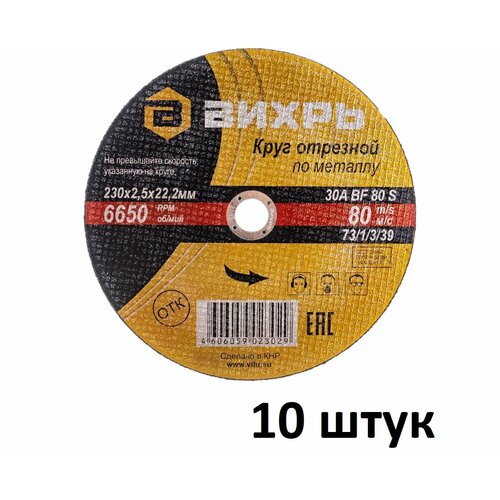 Круг отрезной (10шт) по металлу (230х22х2.5 мм) Вихрь
