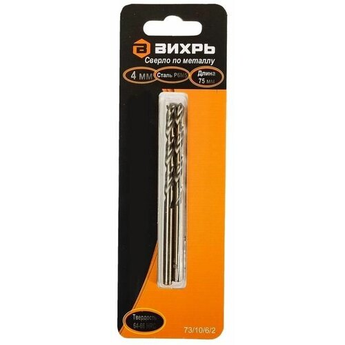 Сверло по металлу вихрь 4 мм, P6M5 (5 уп.)