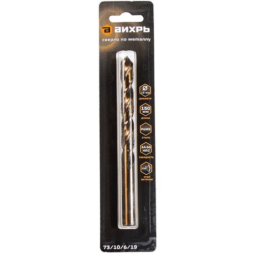Сверло по металлу Вихрь P6M5, 12 мм