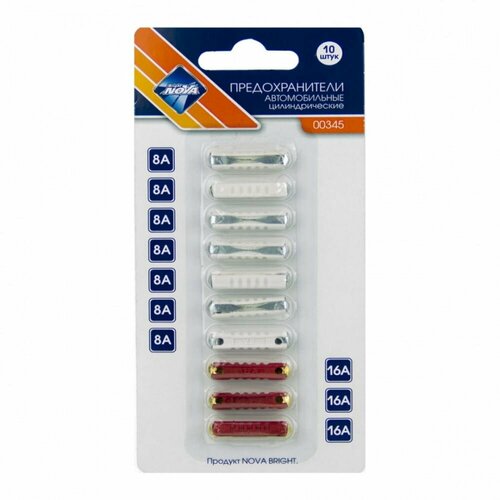 Предохранители цилиндрические Nova Bright, 8-16 А, набор 10 шт