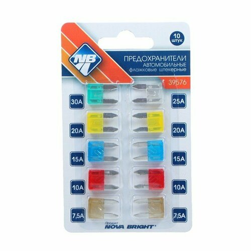 Предохранители флажковые Nova Bright, 7,5-30 А, набор 10 шт