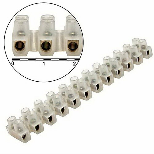 Клеммная колодка винтовая типа U, 12 контактов, 5 A, 380 В, 6 мм2, корпус нейлоновый белый