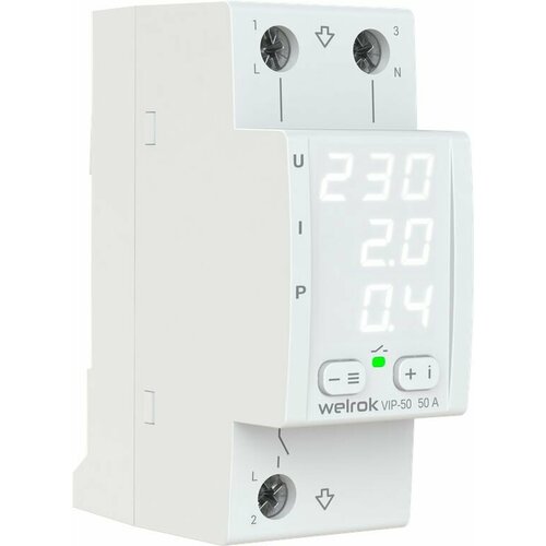 Реле напряжения Welrok VIP-50 многофункциональное с контролем тока и мощности, 50А