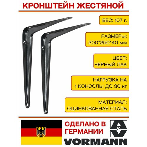 Кронштейн Vormann жестяной 200*250*40 мм, оцинкованный, цвет:, нагрузка до 30 кг, 2 шт.