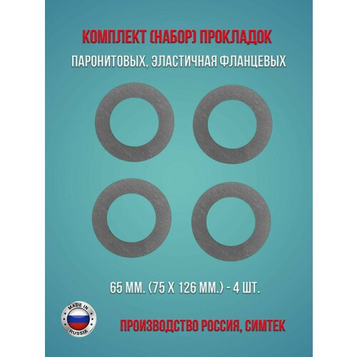 Комплект (набор) паронитовых, эластичная фланцевых прокладок в соответствии с ГОСТ 15180-86 диаметр 65 мм. (75 х 126 мм.), 4 штуки