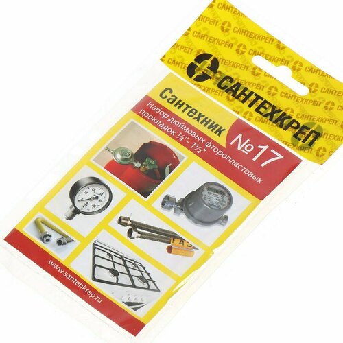 Набор прокладок 1/4"-1" 1/2, фторопласт, СантехКреп, Сантехник №17, 2.7.17.