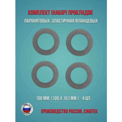 Комплект (набор) паронитовых, эластичная фланцевых прокладок в соответствии с ГОСТ 15180-86 диаметр 100 мм. (106 х 161 мм.), 4 штуки