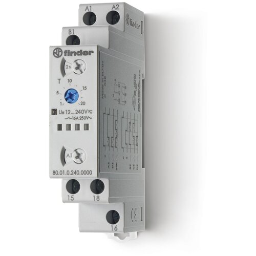 FINDER Таймер модульный мультифункциональный (AI DI SW BE CE DE) 12…240В АС/DC 1CO 16А 17.5мм регулировка времени 0.1с…24ч IP20 FINDER 800102400000