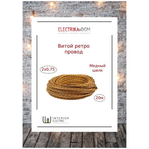 Витой ретро провод 2х0,75 цвет медный шелк, 20м.