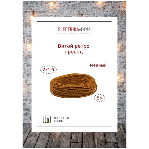 Витой ретро провод 2х0,75 цвет медный шелк, 5м.