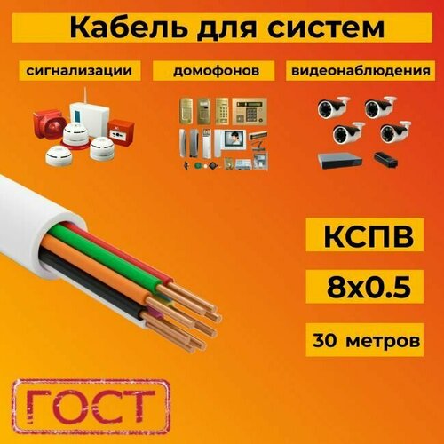 Кабель для систем сигнализации/видеонаблюдения, домофонов ГОСТ КСПВ 8х0.5 мм (0,20 мм2) - 30 м.