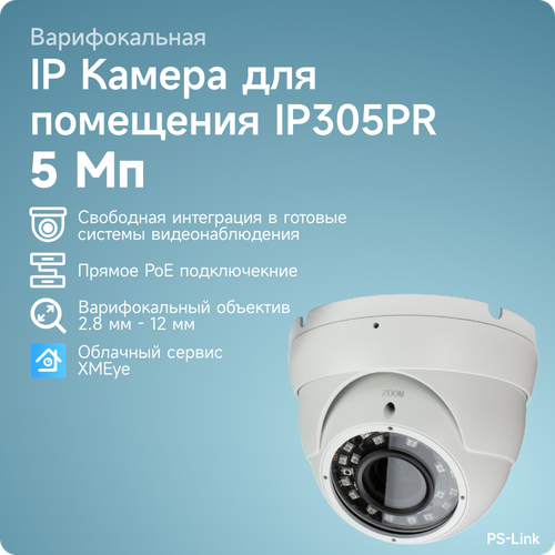 Купольная камера видеонаблюдения IP PS-link IP305PR матрица 5Мп с POE питанием и вариофокальным объективом