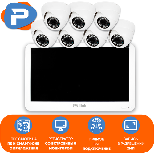 Комплект видеонаблюдения PS-link KIT-A207LCD IP-PoE/ монитор 10"/ 7 внутренних камер/ 2 Мп