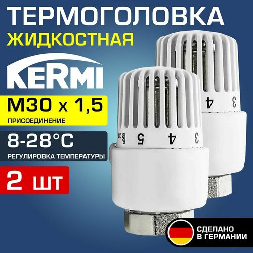 2 шт - Термоголовка для радиатора М30x1,5 Белый Kermi x-net (диапазон регулировки t: 8-28 градусов) / Жидкостная термостатическая головка на батарею