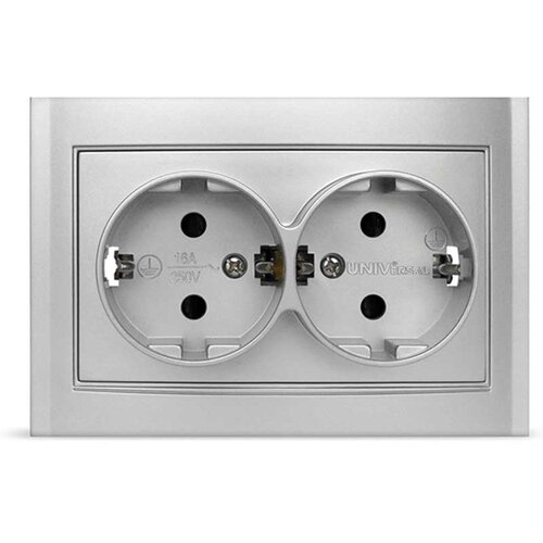 Розетка серая внутренняя двойная с заземлением сборе