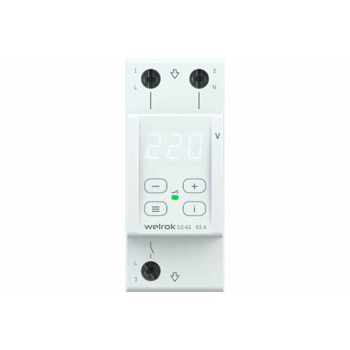 Реле контроля напряжения Welrok D2-63, однофазное, 63А, с термозащитой, двухмодульное (4660251140069)