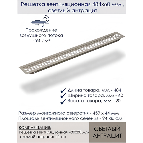 Решетка вентиляционная 480х80 мм, светлый антрацит