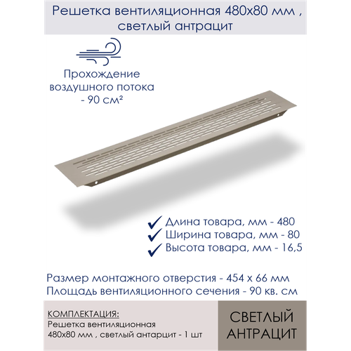 Решетка вентиляционная 480*80 мм светлый антрацит