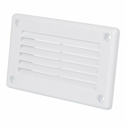 Решётка вентиляционная D100 мм 170х240 мм полистирол цвет белый**Решётка вентиляционная** с фланцем предназначена для правильного распределения и оптимизации потоков воздуха внутри помещения. Изделие изготовлено из прочного пластика, что определяет долгий срок службы. Конструкция модели предусматривает настенное крепление, что позволяет эстетично оформить выходы приточных или вытяжных вентиляционных систем. Решетка универсальна в использовании благодаря классическому белому цвету, может быть использована как для бытовых, так и для промышленных целей. Выдерживает температуру до +60 °C. Рекомендуется к установке в помещениях, оснащенных газовым оборудованием. Монтаж осуществляется с помощью винтового крепления.