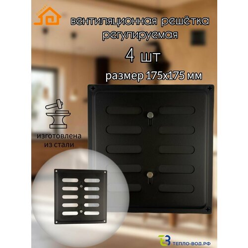 Решетка вентиляционная регулируемая, стальная 175х175 - 4 шт.