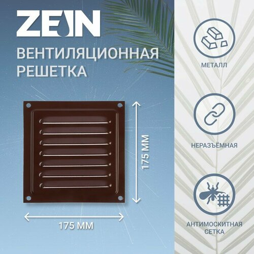 Решетка вентиляционная ZEIN Люкс РМ1717КР, 175 х 175 мм, с сеткой, металлическая, коричневая, Бренд: ZEIN, Страна производитель: Ро...