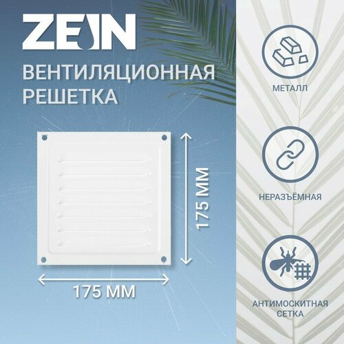 ZEIN Решетка вентиляционная ZEIN Люкс РМ1717, 175 х 175 мм, с сеткой, металлическая, белая