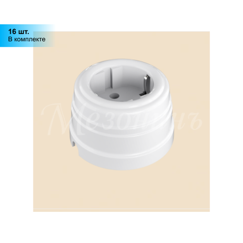 (16 шт.) МезонинЪ Усадьба Пластик Белый Розетка 2-пол. с заземляющими контактами GE30301-01