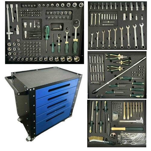 Тележка инструментальная с инструментом Rock Force 310 предметов в мягких ложементах синяя