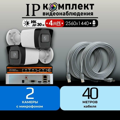 Готовый IP цифровой комплект видеонаблюдения 4 МП HiWatch на 4 уличные POE камеры с микрофоном 2560х1440 2K