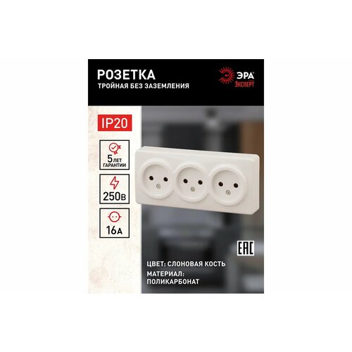 Розетка ЭРА Эксперт 3х2P 16A 250V 11-2207-02 Б0020698