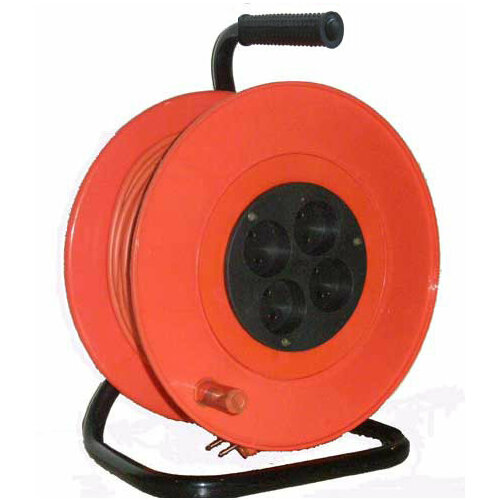 Удлинитель силовой УС-4 50 метров, провод ПВС 3х1,5 мм2, 4 розетки, катушка пластик (УС-4-50), шт QUATTRO ELEMENTI