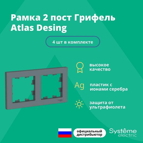 Рамка для розетки выключателя двойная Schneider Electric (Systeme Electric) Atlas Design Антибактериальное покрытие Грифель ATN000702 4шт