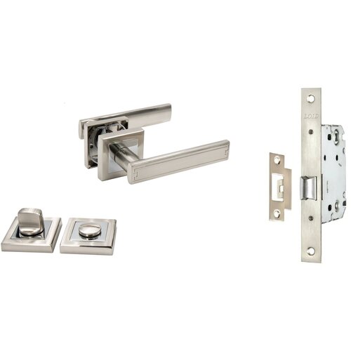 Ручки дверные межкомнатные на розетке Loid 450 SN + замок M-2055 B SN + завертка квадратная SN/CP хром
