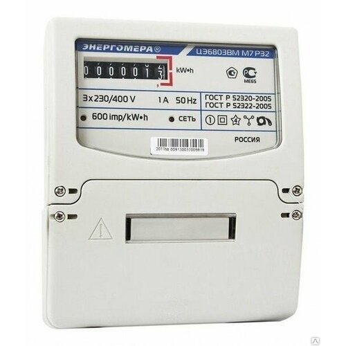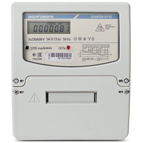 Счетчик электроэнергии трехфазный однотарифный Энергомера ЦЭ6803В 1 230В 10-100А 3ф.4пр. Э Р32 10(100) А без привязки к региону однотарифный