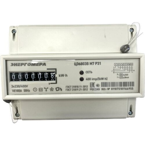 Счетчик электроэнергии трехфазный однотарифный Энергомера ЦЭ6803В 1 230В 10-100А 3ф.4пр. М7 Р31