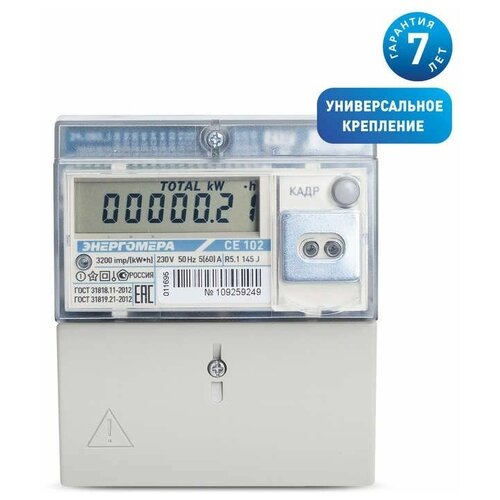 Счетчик электроэнергии однофазный многотарифный Энергомера CE 102 R5.1 145 J 5(60) А без привязки к региону многотарифный