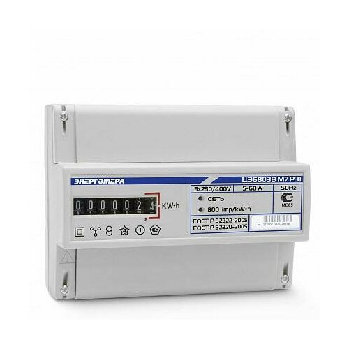Счетчик ЦЭ6803В 3ф 5-60А класс точн. 1.0 1 тариф. на DIN-рейку 230В 1 4 пров. М7Р31 Энергомера 101003001011074