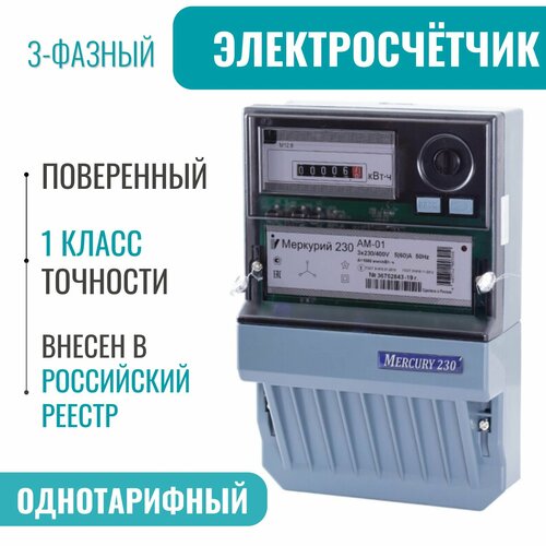 Счетчик электроэнергии Меркурий 230 АМ-01 трехфазный, однотарифный, ОУ, 5(60)А