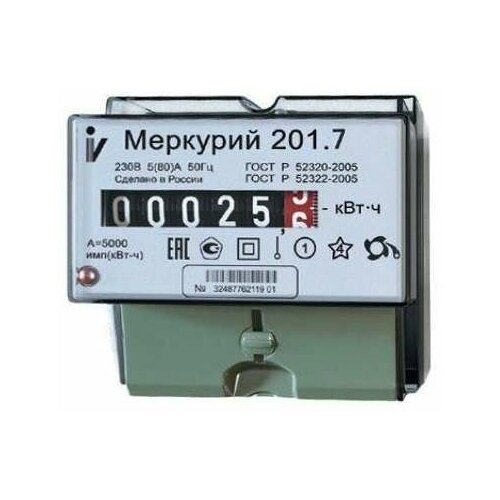 Счетчик "Меркурий" 201.7 1ф 5-60А 1 класс точн. 1 тариф. мех. табло DIN-рейка Инкотекс 32680 (9шт. в упак.)