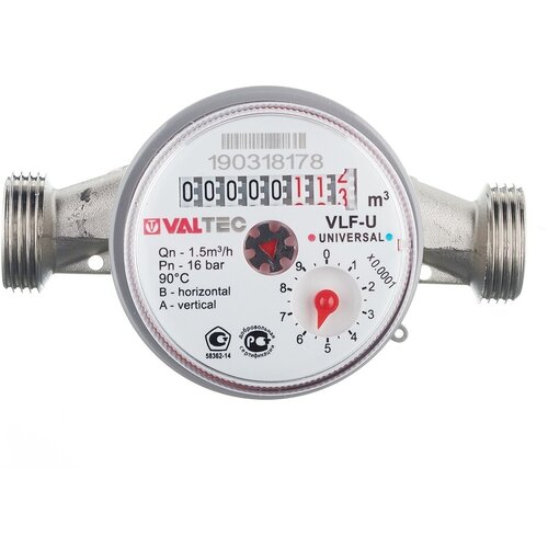 Универсальный квартирный водосчетчик Valtec до +90 С, 1,5м3, 1/2", 110 мм VLF-15U подойдет для измерения и холодной, и горячей ...