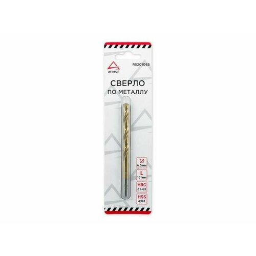 ARNEZI R5201065 Сверло по металлу HSS 6.5 мм нитрид-титановое покрытие ARNEZI R5201065