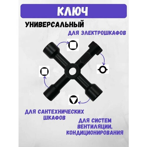 Ключ, для электрошкафов и сантехнических ящиков, многофункциональный, металл, 1 шт