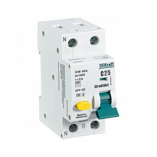 Дифференциальный автоматический выключатель ДИФ101 4 полюса, 25А, Тип AC, х-ка C, 30мА | код. 15022DEK | DEKraft (3шт. в упак.)