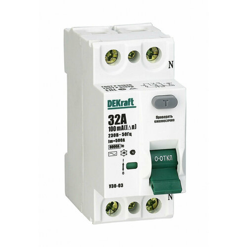 Выключатель дифференциального тока ВДТ (УЗО) 40А 2П двухполюсный 6кА 100мА тип AC УЗО-03 14063DEK DEKraft