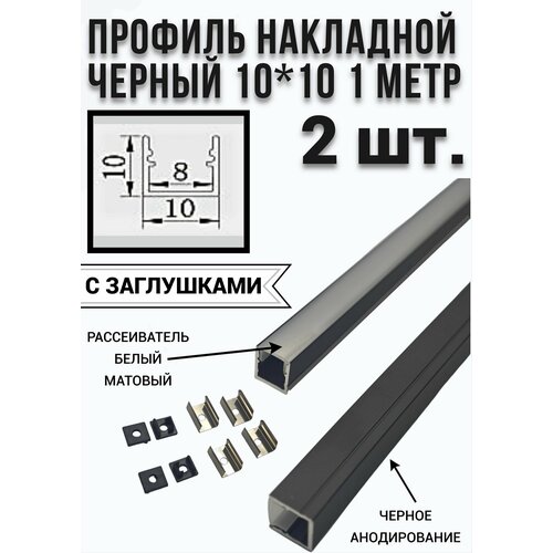 Профиль алюминиевый для светодиодной ленты накладной 10х10 - 1м - (набор х 1000мм 2 штуки) с заглушками