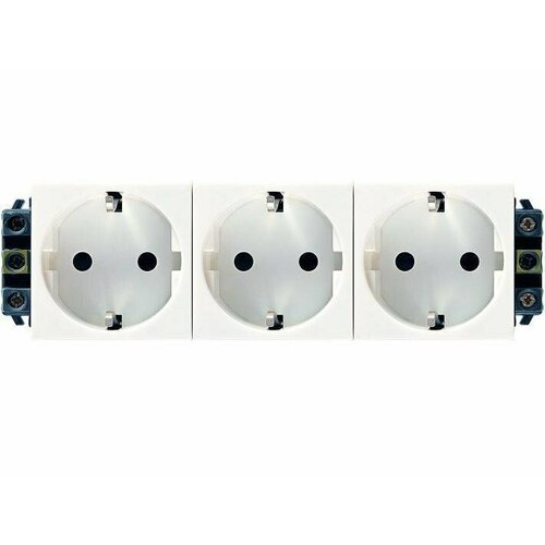 Розетка тройная с заземлением, шторками, белая 6м 3х2p+E Legrand Mosaic 074182