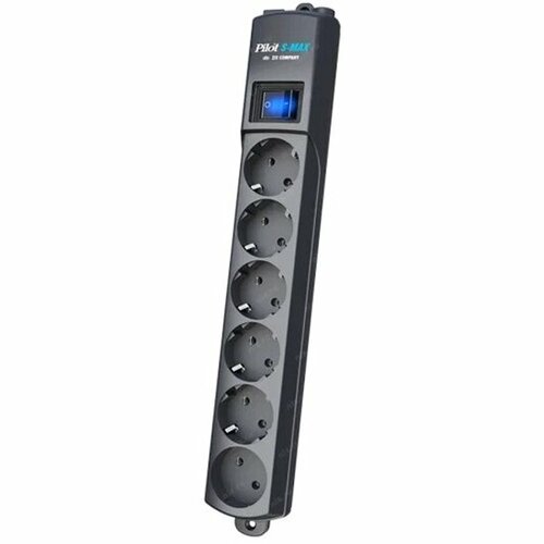 Сетевой фильтр Pilot S, 6 розеток, с/з, 10А / 2200 Вт 6 7 м 1 кв. мм 375 мм 46 мм 58 мм графит