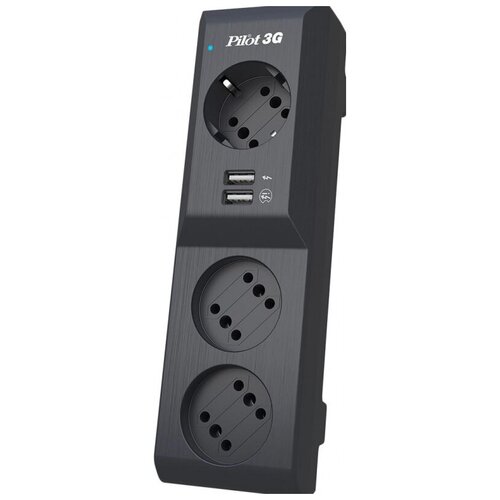 Сетевой фильтр PILOT 3G (3 евро+2 USB/3м/10А/150Дж/черный)