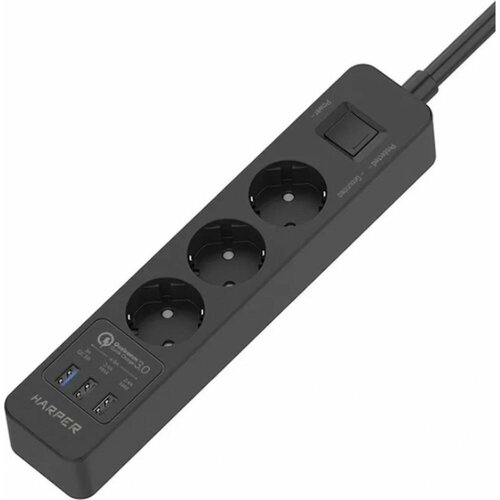 Сетевой фильтр Harper UCH-340, 3 розетки, USB-A x3 (H00002821), 1.5 м