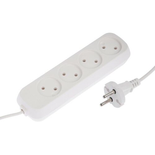 Удлинитель Luazon Lighting ECO, 4 розетки, 10 м, 10 А, 2200 Вт, ПВС 2х0.75 мм2, без з/к, белый